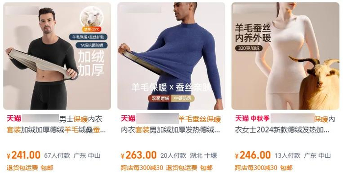 像羊毛+桑蚕丝面料的保暖套装,市面上都要卖200多一套。