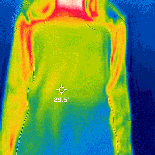保暖内衣薄且暖的原理是将人体散出的热量反射回去,促进血液循环,吸收光热,最终达到保暖效果,被称为远红外性能。
