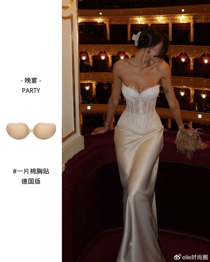 如果是深 V 礼服,我会搭配硅胶显大款,胸型会更完美。