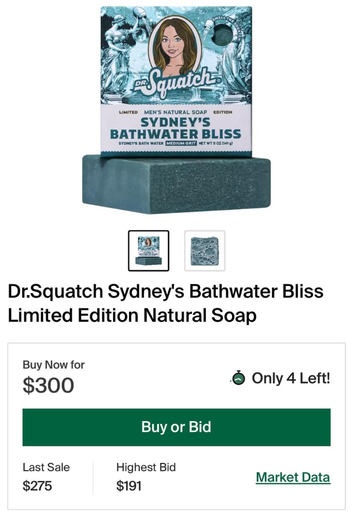 之前,在2024年悉尼妹Sydney Sweeney和小众护肤品牌Dr.Squatch合作推出的洗澡水肥皂正式发售,限量5000份,结果被粉丝抢空...