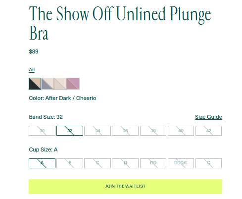 经过两天预热后,首批单品于1月28日上午9点正式发售,尺码涵盖44种(30B至42DDD),发售价从19美金-89美金(约合人民币132元-619元 )。