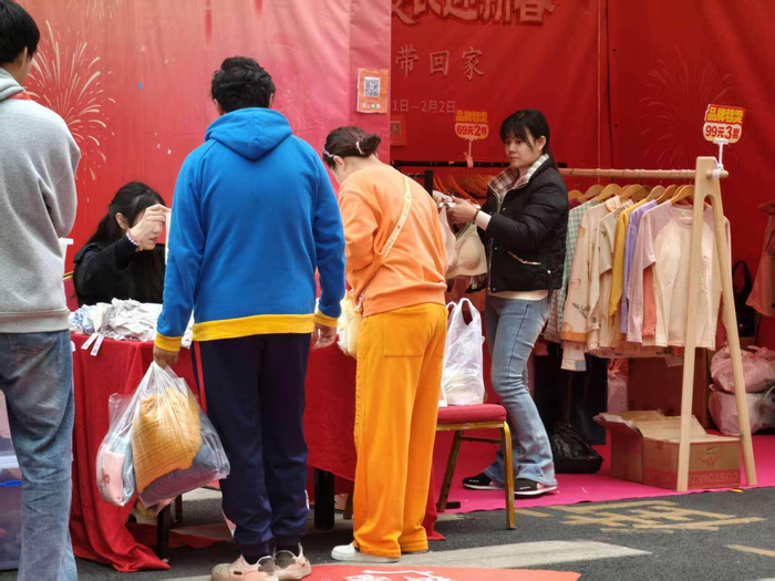“这里款式很多、品质好、价格也实惠,总的来说性价比超高!”姚女士笑着向记者展示手中的“战果”:“这是给爸妈选的毛衣,这两套是孩子的新春新衣,还有朋友托我代购的几款衣服。价格太实惠了,几十块钱就能买到商场标价上百元甚至几百元的品质好物”。